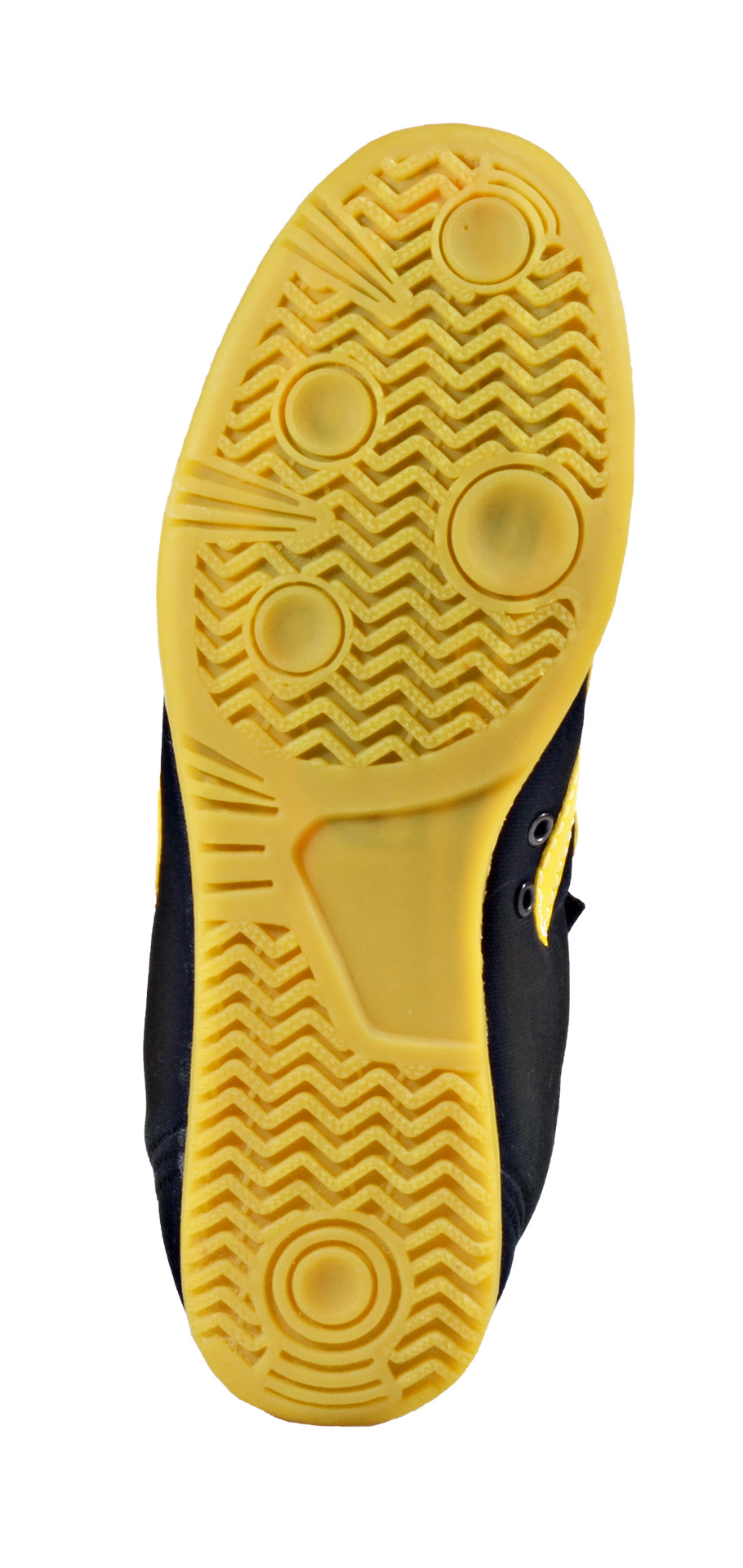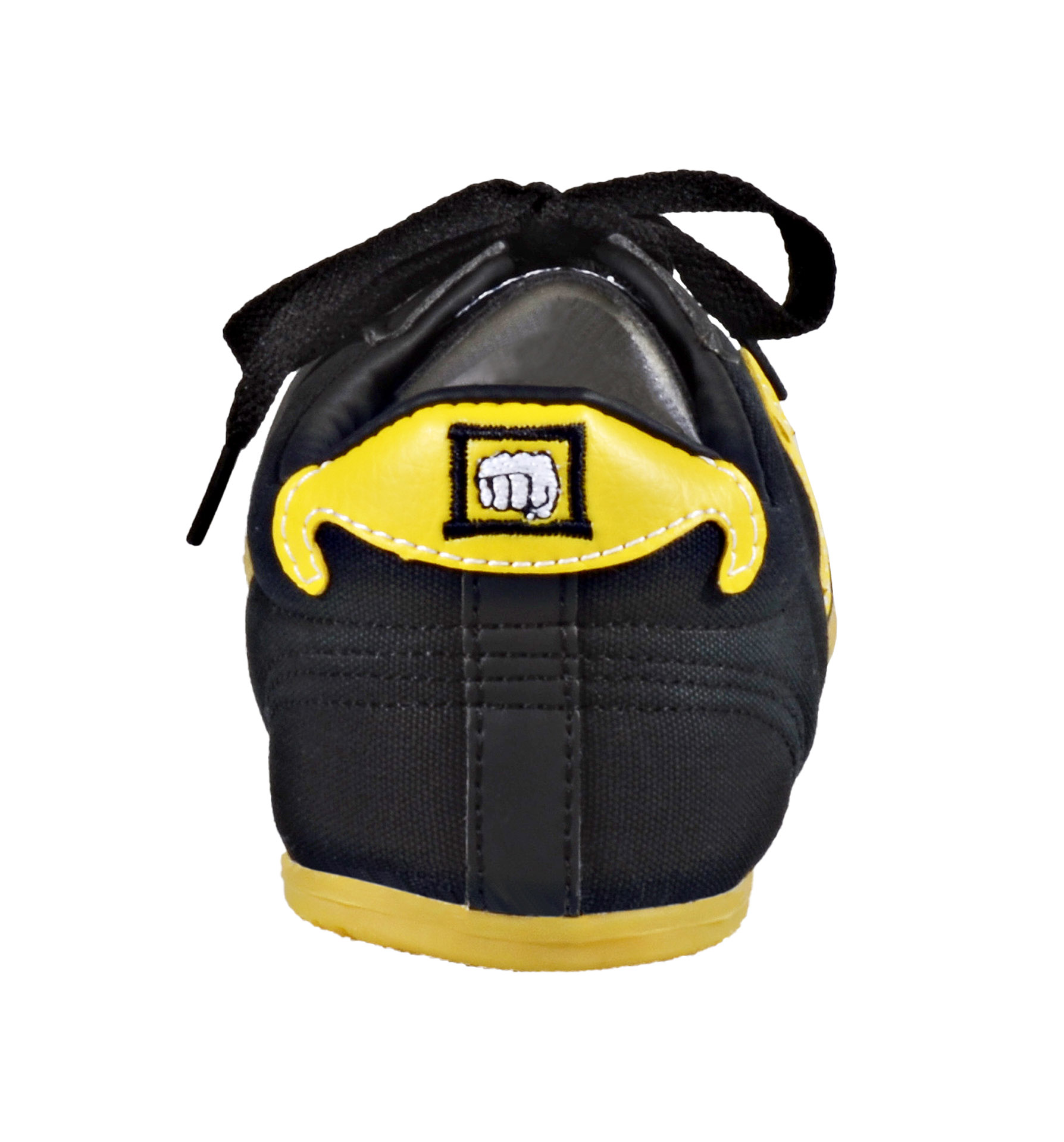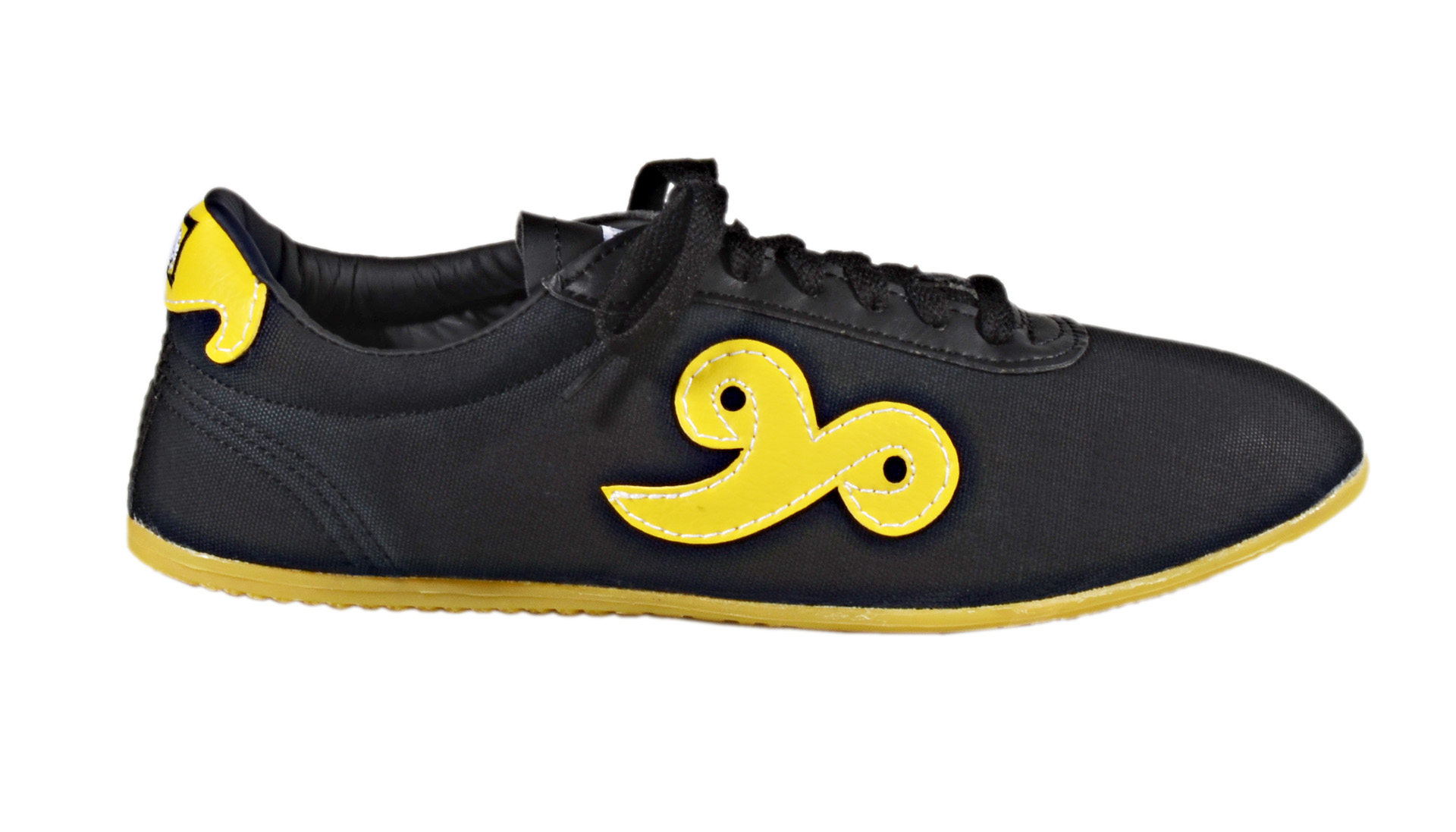 - Die solide gefertigten, preiswerten Schuhe haben chinesische, gelbe Designapplikationen an der Seite und an der Ferse.